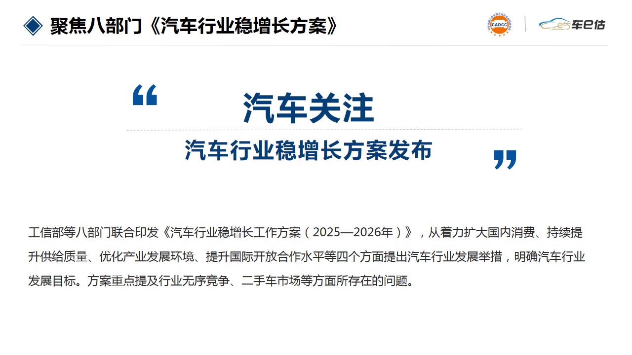 《汽车行业稳增长工作方案(2025—2026年)》(以下简称《方案》),首先关注到汽车行业存在的无序竞争问题。近年来,随着汽车市场竞争加剧,特别是新能源汽车领域,出现了一些不规范的市场行为。《方案》提出要加强成本调查和价格监测,强化产品生产一致性监督检查,督促重点车企落实好支付账期承诺。《方案》还提出开展汽车行业网络乱象专项整治,规范行业数据信息发布,依法打击虚假宣传、商业诋毁等行为。